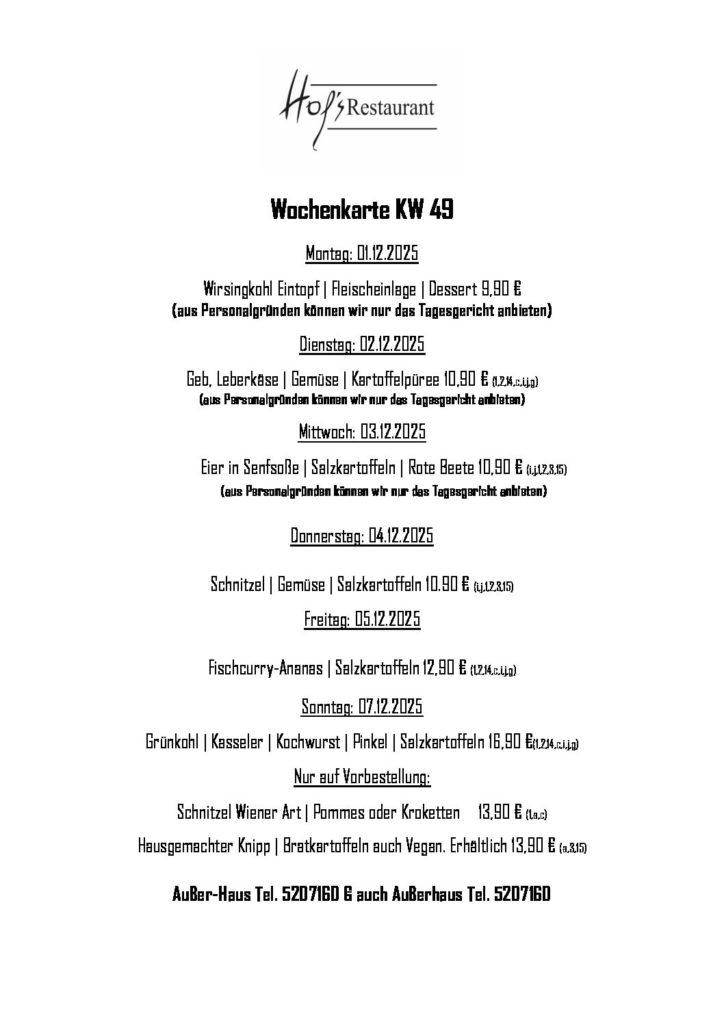 Das Team des Hof´s Restaurant wünscht einen guten Appetit!